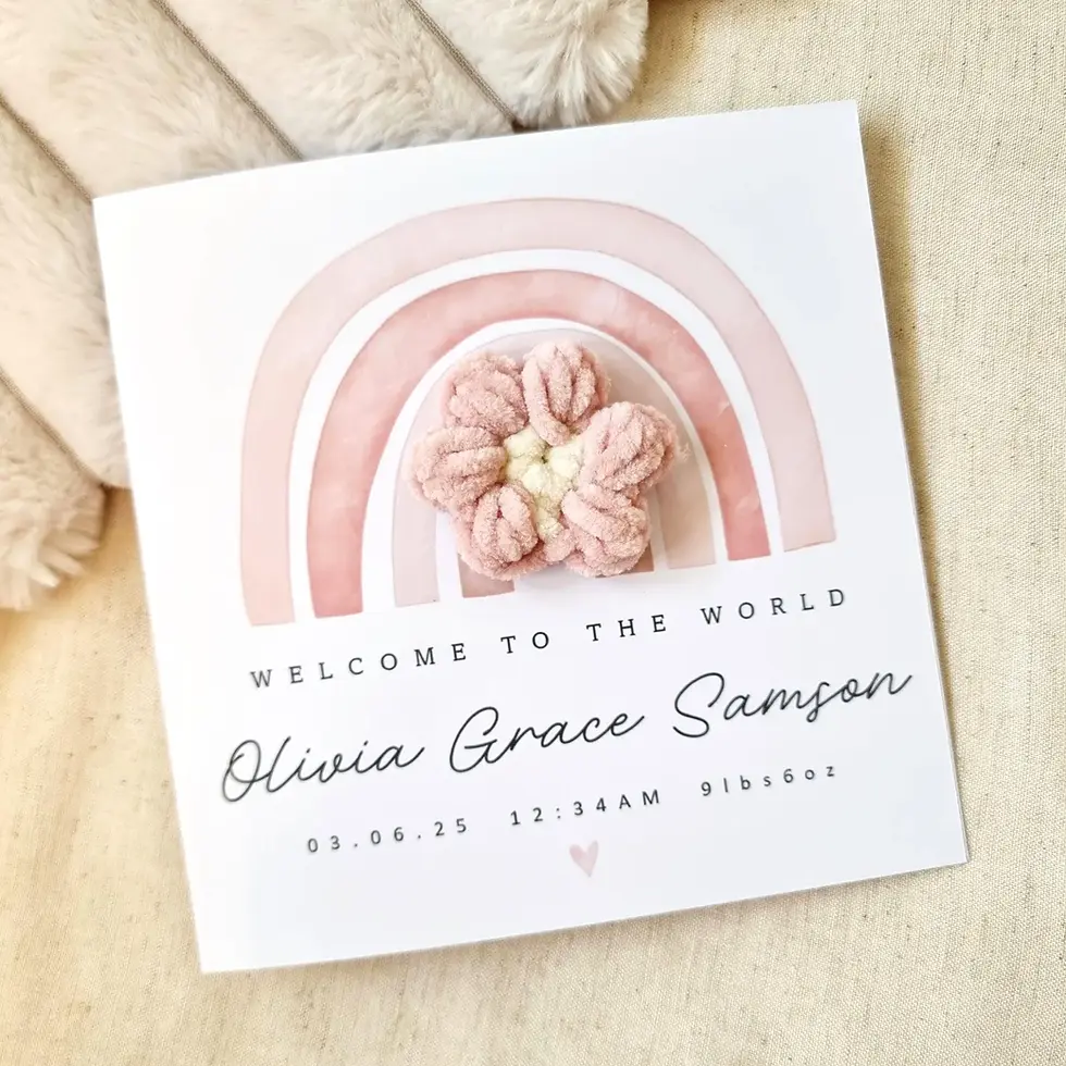 Introduce a handcrafted charm to your greetings with our crochet cards, showcasing intricate crochet designs for a unique and personal touch. Ideal for birthdays, new babies, christenings and special occasions, these beautifully crafted cards add a warm, handmade feel to your messages.